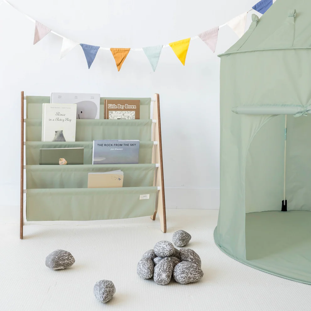 Një raft librash në lartësinë e fëmijës inkurajon argëtimin dhe mësimin në të njëjtën kohë.