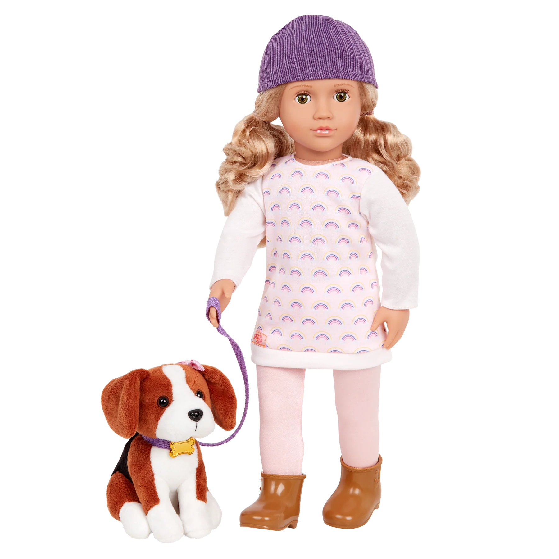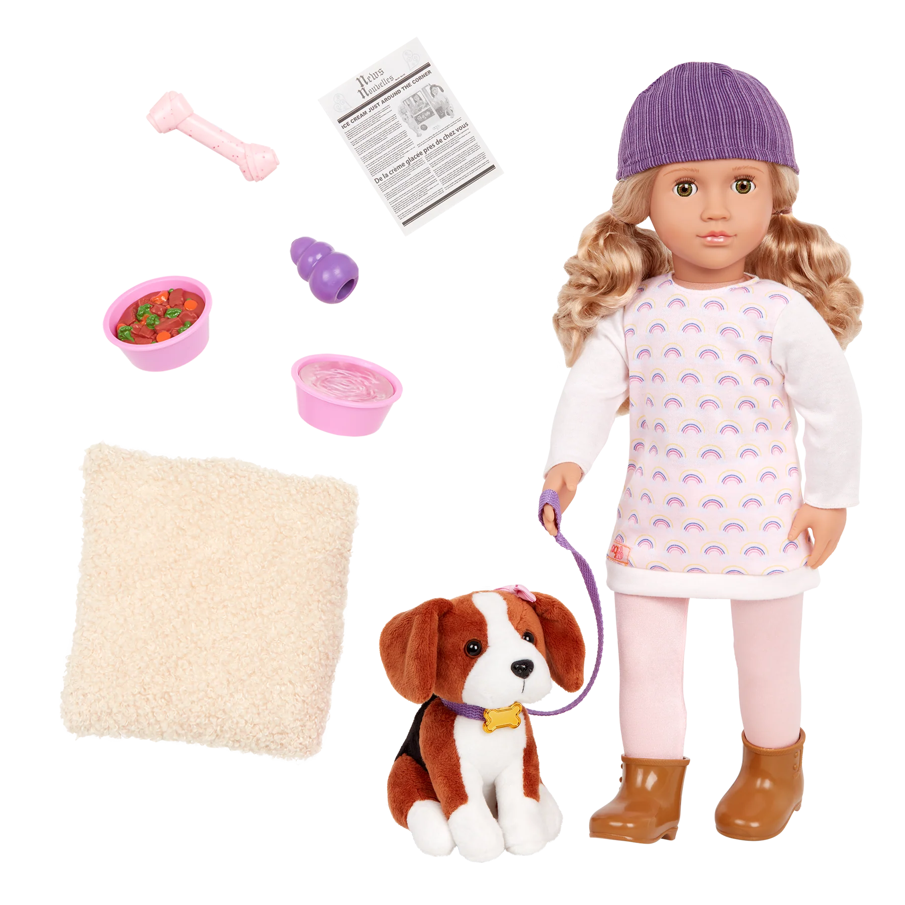 Loja e këlyshëve dhe ditët plot argëtim janë përpara me kukullën tonë 18 inç Ember dhe qenushin e saj Elsie!