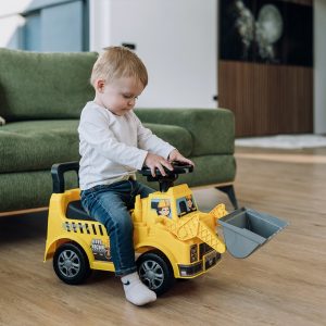 Mbështetësja e lartë ofron siguri dhe rehati shtesë, ndërsa një ndarje e fshehur nën sedilje është perfekte për thesare të vogla. Timoni përmban drita të integruara dhe efekte zanore, duke e bërë çdo udhëtim edhe më argëtues dhe emocionues.