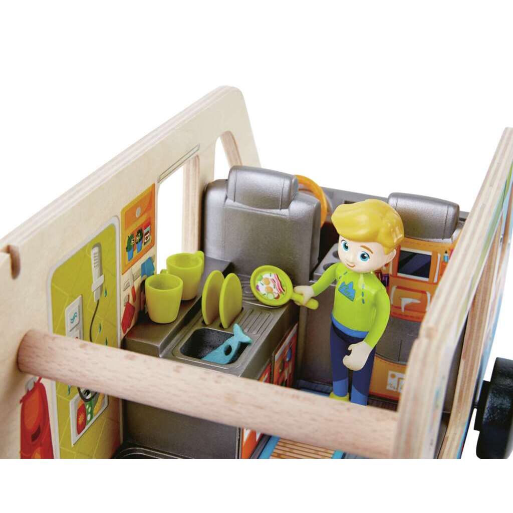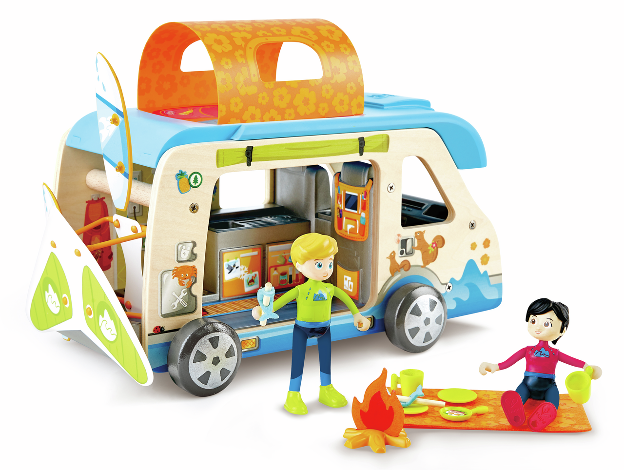 SHUMË AKSESORË: Ky furgon aventuresk vjen me 2 figurina, një tendë, zjarr kampi, set pikniku për 2, 3 karta lundrimi, 2 dërrasa sërfi, një hang-glider dhe aksesorë ushqimi dhe gatimi.