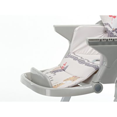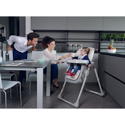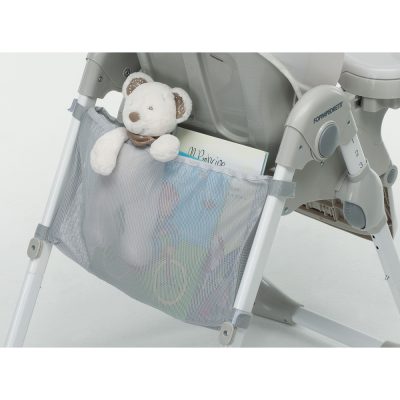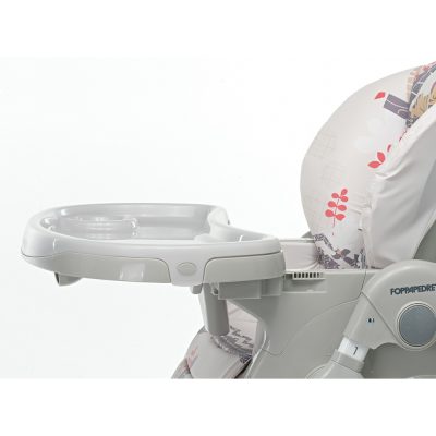 Karrigia e lartë e palosshme Meeting nga Foppapedretti ka një sedilje të rregullueshme në lartësi dhe një mbështetëse me pozicione të shumta. E disponueshme në ngjyra dhe modele të ndryshme, ka një parzmore me 5 pika, një tabaka që mund të rregullohet në 3 pozicione dhe një tabaka shtesë të lëvizshme për pastrim të lehtë.
