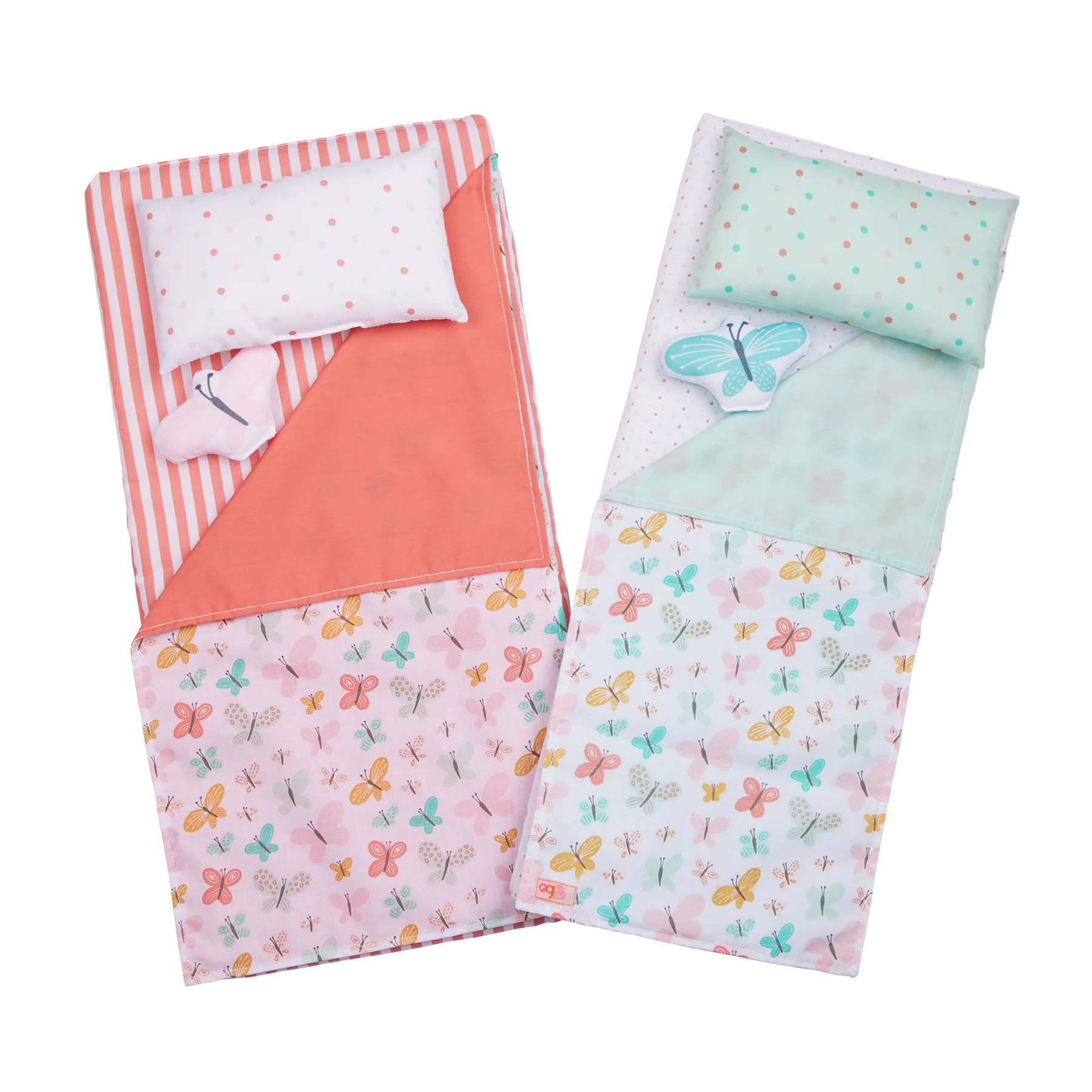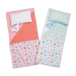 Ëndrrat për dy krevate përfshijnë 2 dyshekë me shkumë të mbuluar me pëlhurë, 4 jastëkë dhe 2 batanije në ngjyra të bukura pastel me modele të lezetshme fluturash.