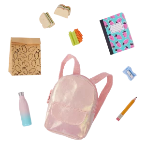 ♥ Përfshin drekë dhe pajisje shkollore: Evie sjell çantën e saj të preferuar të shkollës rozë metalike të mbushur me sende argëtuese si fletore, laps, mprehës lapsash, shishe uji, çantë dreke, grup perimesh dhe 2 gjysma sanduiç.