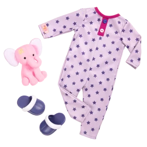 ♥ Përfshin: kukull, pizhame, një palë pantallona, pelushi elefant dhe pantofla.