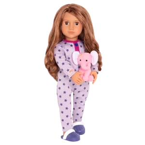 Kjo kukull 18 inç e gjeneratës sonë ka flokë të gjatë kafe që janë argëtuese për t’u krehur dhe stiluar, dhe sytë e saj të bukur kafe mbyllen kur është koha për të ëndërruar ëndrra të ëmbla!