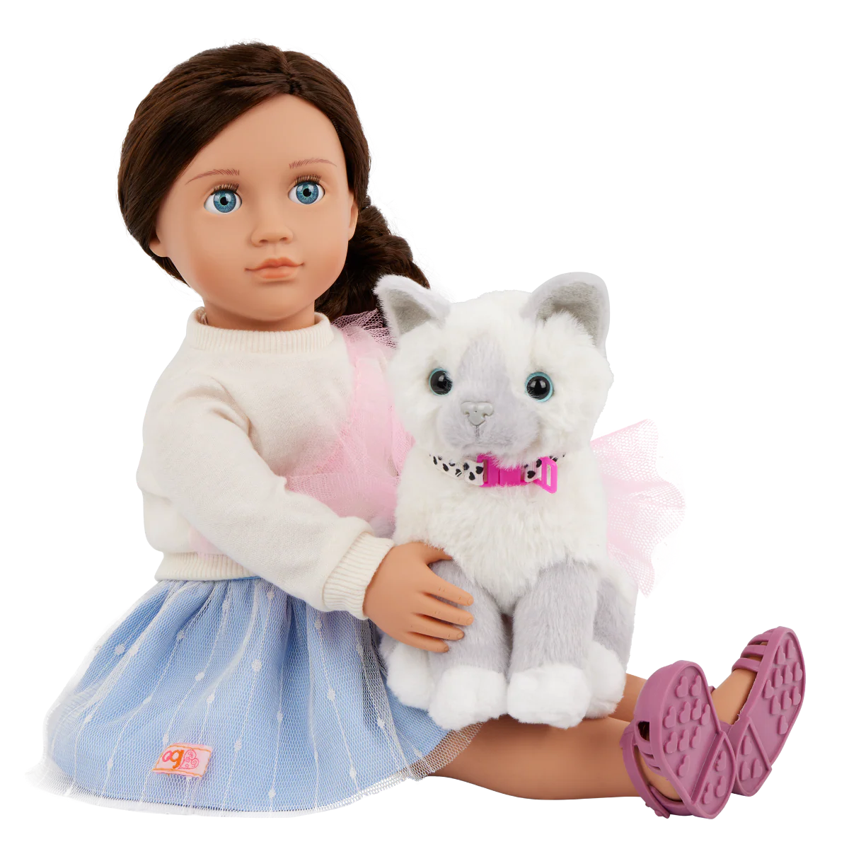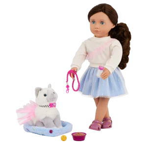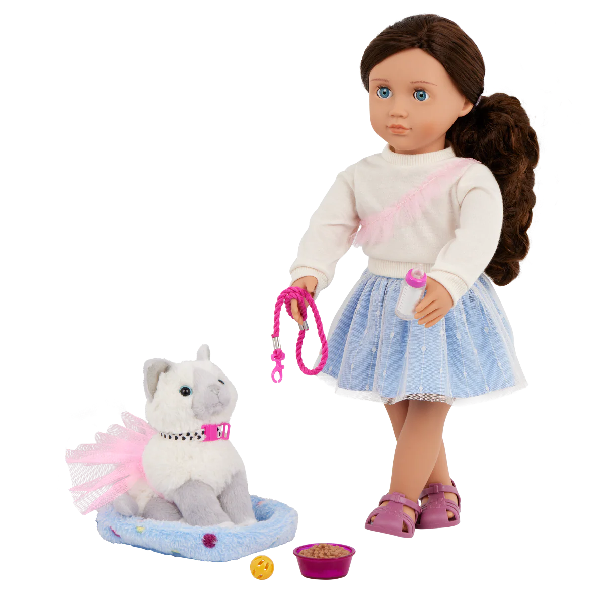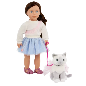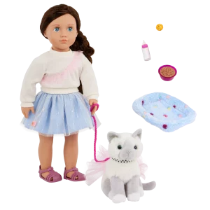 ♥ Set kukullash dhe kafshësh shtëpiake 46 cm: Kukulla jonë e gjeneratës 46 cm Mindy dhe kotele e saj e përkëdhelur Pepper ndezin miqësi dhe argëtim për fansat e kafshëve!