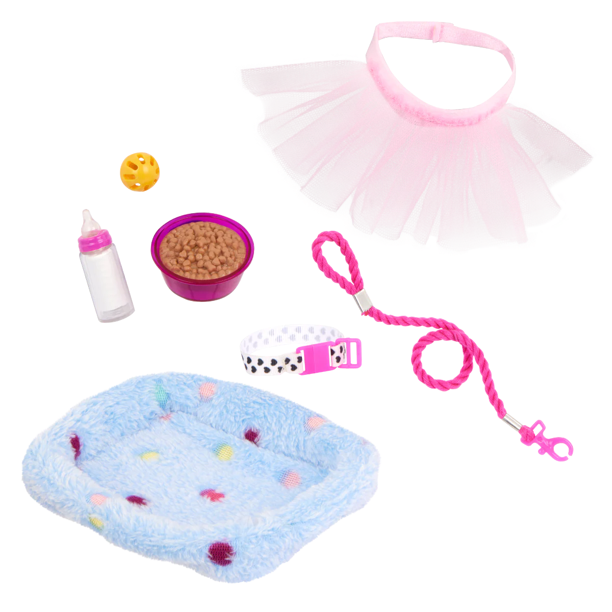 Plus, ata mund të kujdesen për këtë mike me gëzof dhe ta mbajnë atë elegante me pjesë loje bonus si një tutu, një jakë, një plumb, një top, një tas me ushqim, një shishe qumësht dhe një shtrat!