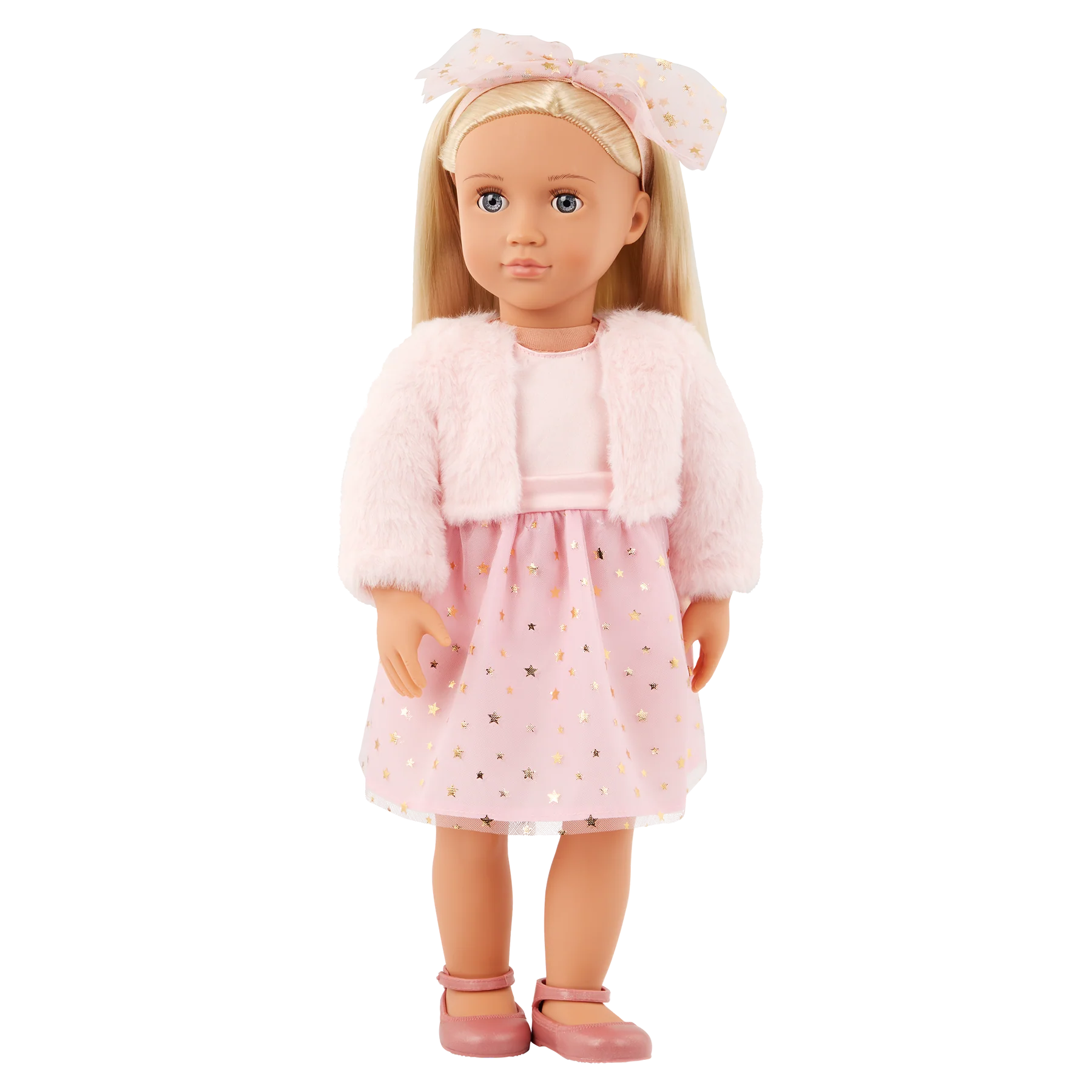♥ Kukulla e modës 18 inç: Kukulla jonë e gjeneratës 18 inç Miranda shkëlqen në një mënyrë të bukur rozë nga harku te këmbët!