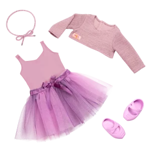 ♥ Përfshin: Një kukull, fustan baleti, ngritje supesh, shirit koke me shkëlqim dhe këpucë baleti.