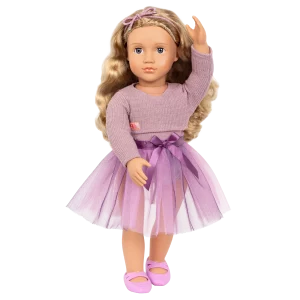 Rrotullohuni dhe shkëlqeni me Savannah, kukulla balerina 18 inç e gjeneratës sonë me flokë të gjatë bjonde me onde dhe sy blu të errët që hapen dhe mbyllen!