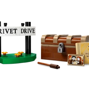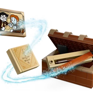 Lojë rolesh me aksesorë: Ky set lojërash i Harry Potter përfshin gjithashtu një bagazh me një portret të Harry-t dhe prindërve të tij, një element libri të Historisë së Magjisë dhe një shkop magjik të ndërtuar me tulla në kutinë e tij