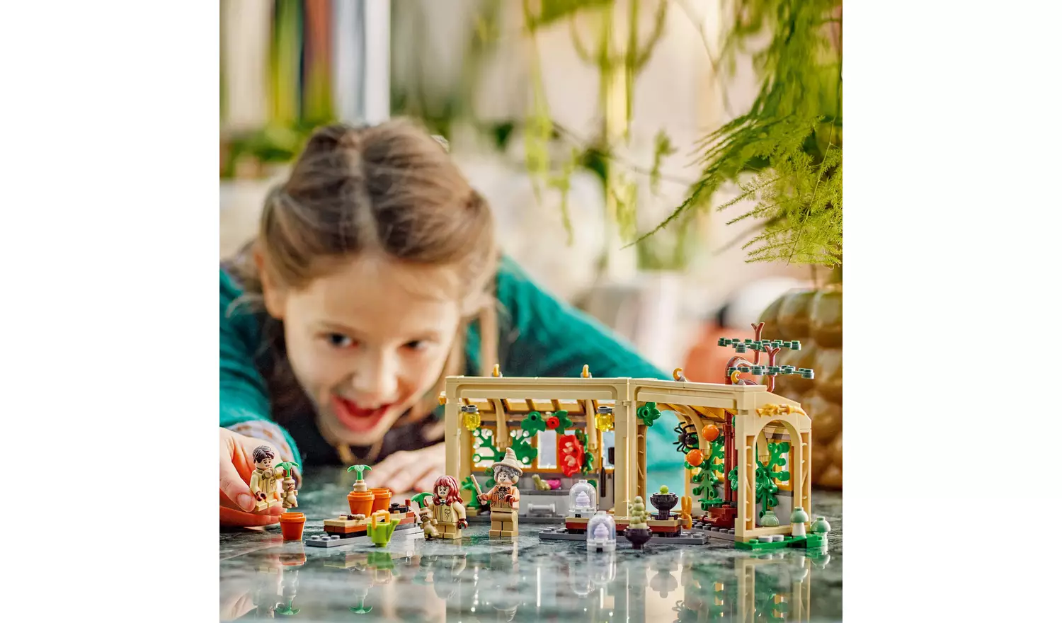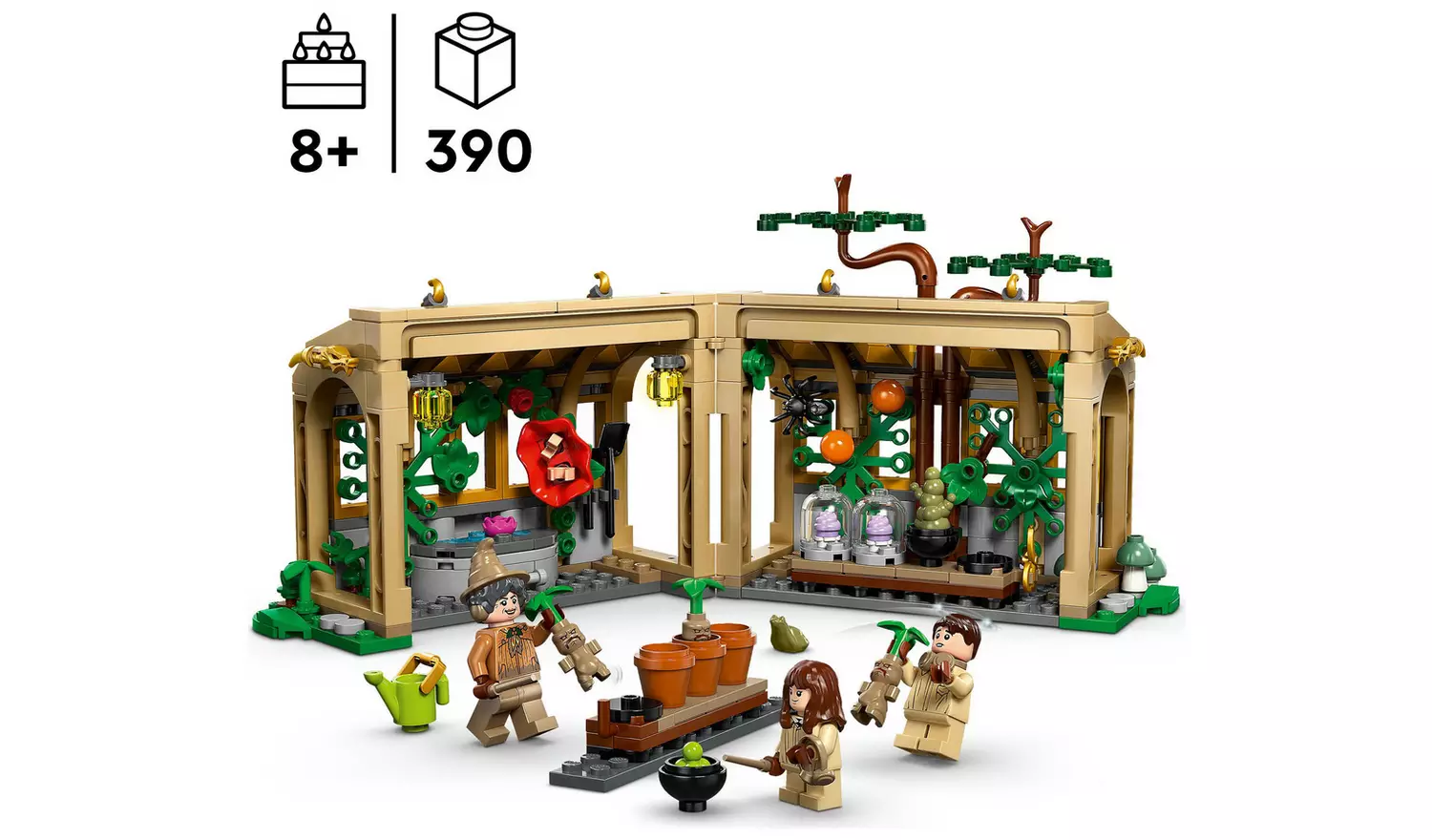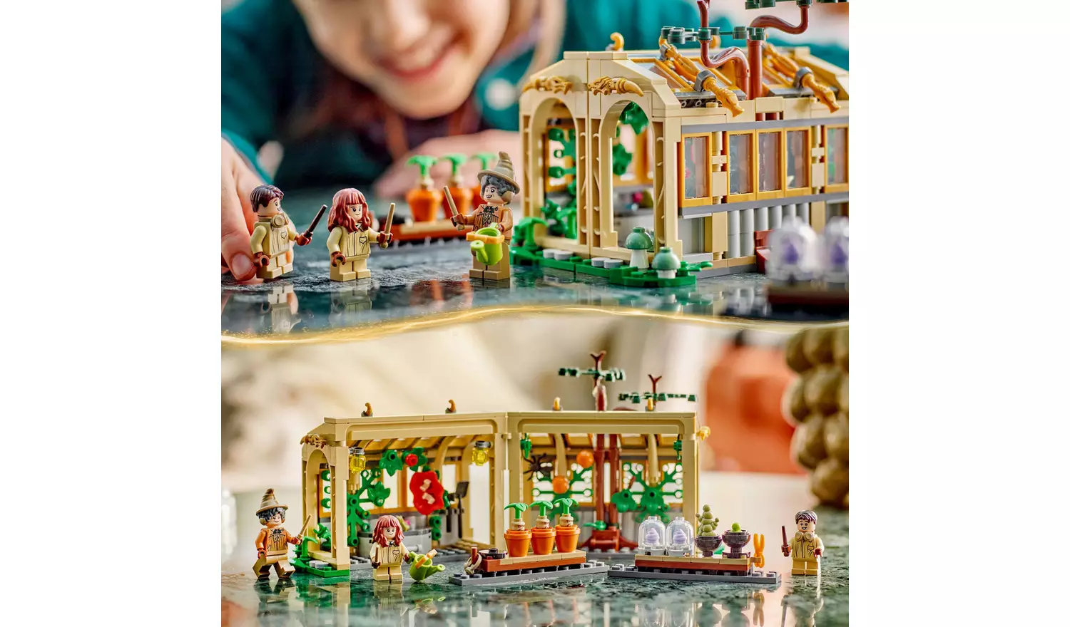 Një lodër e ndërtueshme e Kalasë së Hogwarts – Përmban një serë hapëse me bimë magjike, 2 tavolina të lëvizshme, një pemë përmes një dritareje ‘të thyer’ dhe aksesorë argëtues kopshtari LEGO.