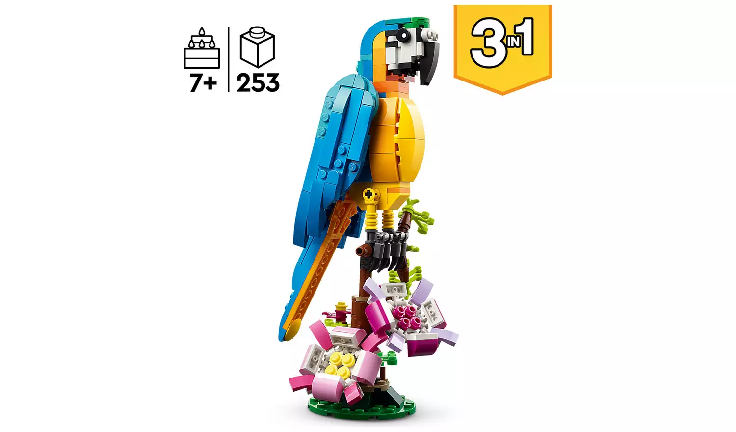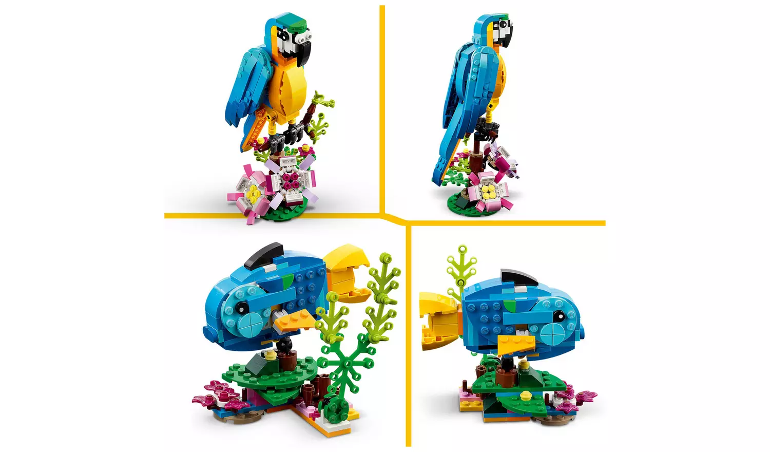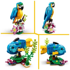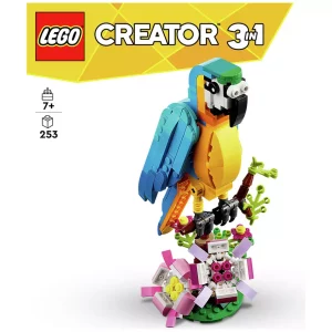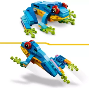 Ky set LEGO Creator 3in1 përmban 3 kafshë lodër që fëmijët t’i ndërtojnë – një papagall të vendosur në një degë, një bretkosë lodër dhe një peshk lozonjar