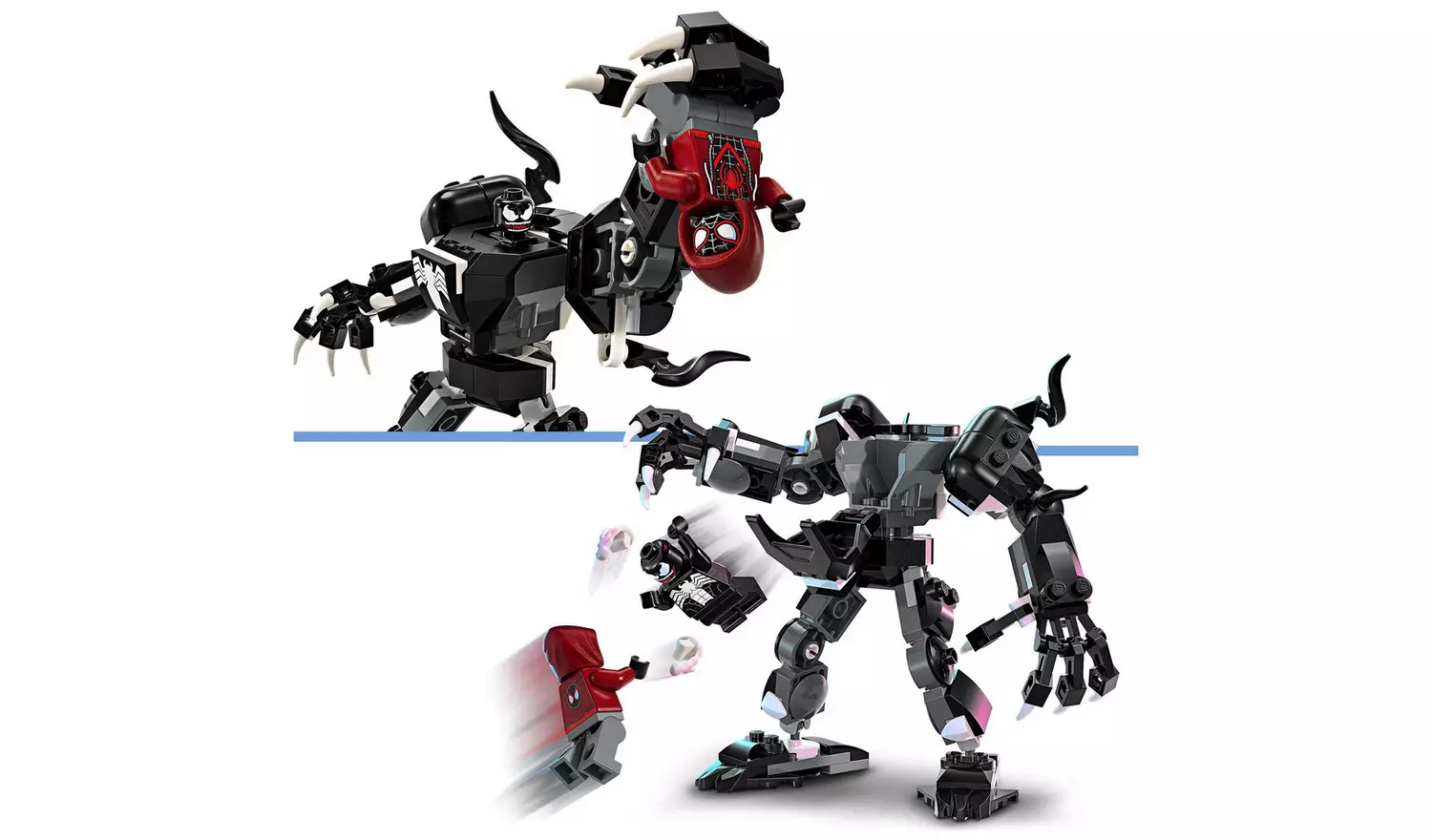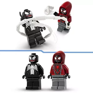 Mech lëvizës – Përfshin një figurë aksioni të ndërtueshme Venom mech me këmbë, krahë dhe gishta të lidhura, plus minifigura Miles Morales dhe Venom LEGO.