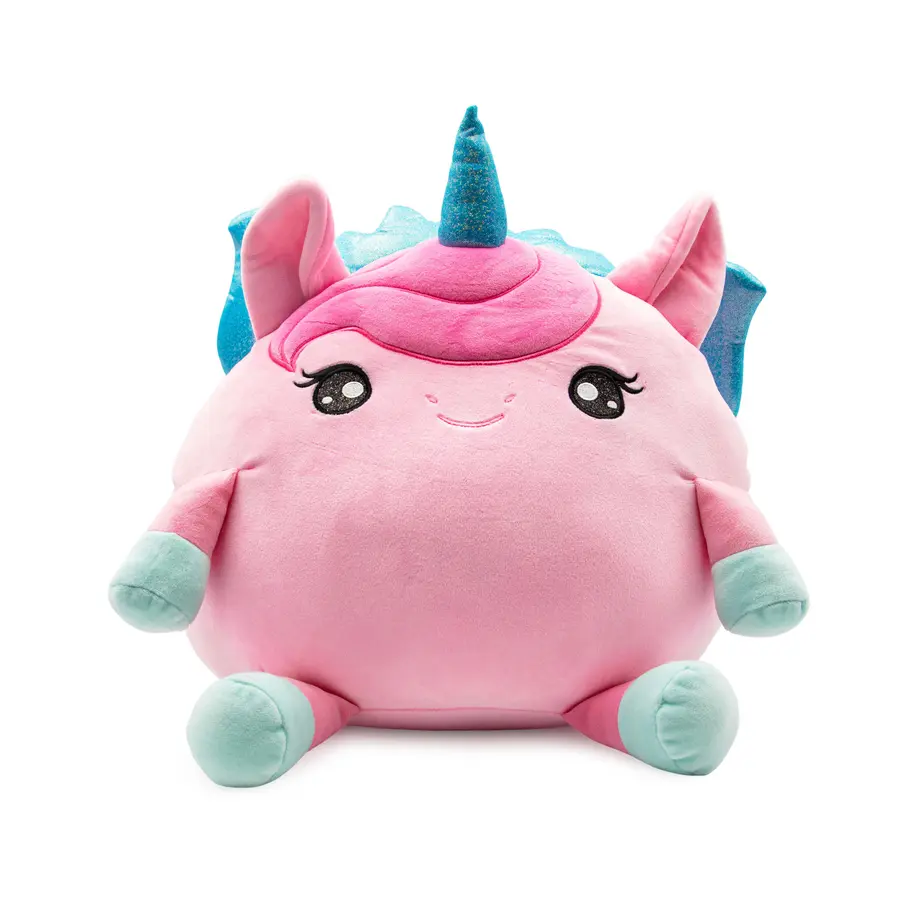 Këto lodra magjepsëse prej pelushi njëbrirësh vijnë në gjashtë dizajne të lezetshme, secila me diametër 30 cm dhe me krahë vezullues, një kurorë dhe një bri.