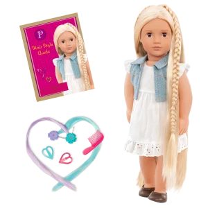 Kjo kukull e bukur 18 inç ka sy lajthie që hapen dhe mbyllen me flokë të gjatë, bjonde të lehta që janë shumë argëtuese për t’u krehur dhe stiluar!