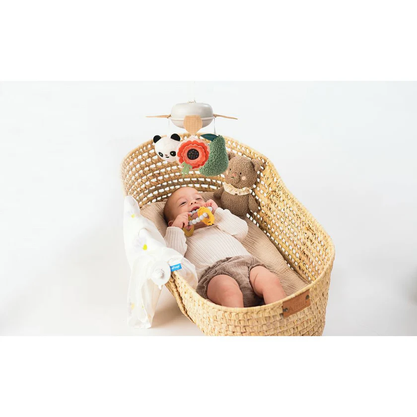 Celulari muzikor, me një lule, panda dhe dardhë, rrotullohet butësisht ndërsa luan 22 minuta melodi qetësuese, duke krijuar një mjedis ngushëllues dhe të njohur në shtëpi ose në lëvizje.