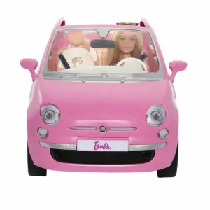 Barbie me Auto 500 Cabrio – Set Kukull dhe Mjet HRG59 Ky set Barbie HRG59 përfshin një Barbie me stil dhe një Fiat 500 Cabrio në versionin rozë, perfekt për të shtuar një prekje stili dhe argëtimi në aventurat e të vegjëlve. Një lodër ideale për të gjitha vajzat që duan të eksplorojnë botën me stil!