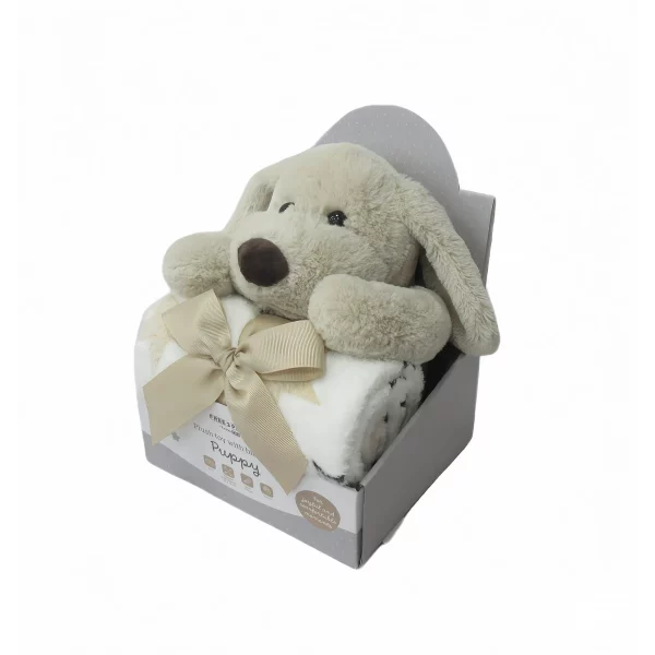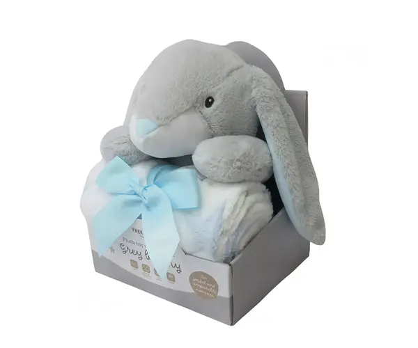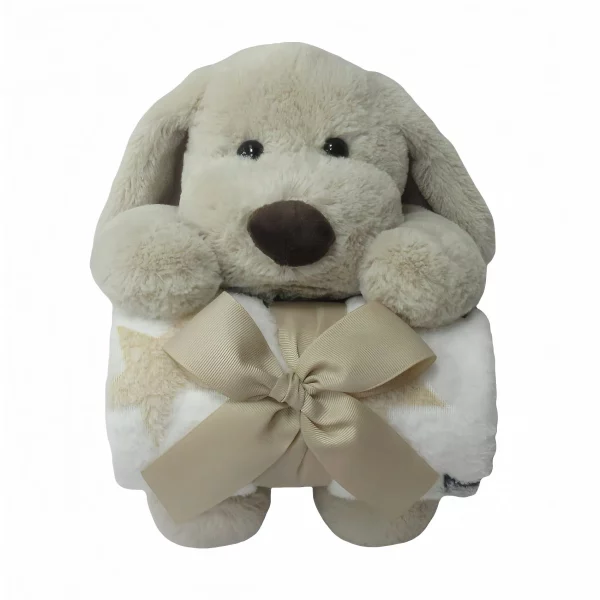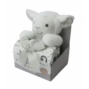 Lodra prej pelushi me batanije është e paketuar në një kuti të bukur dhuratash me hark.