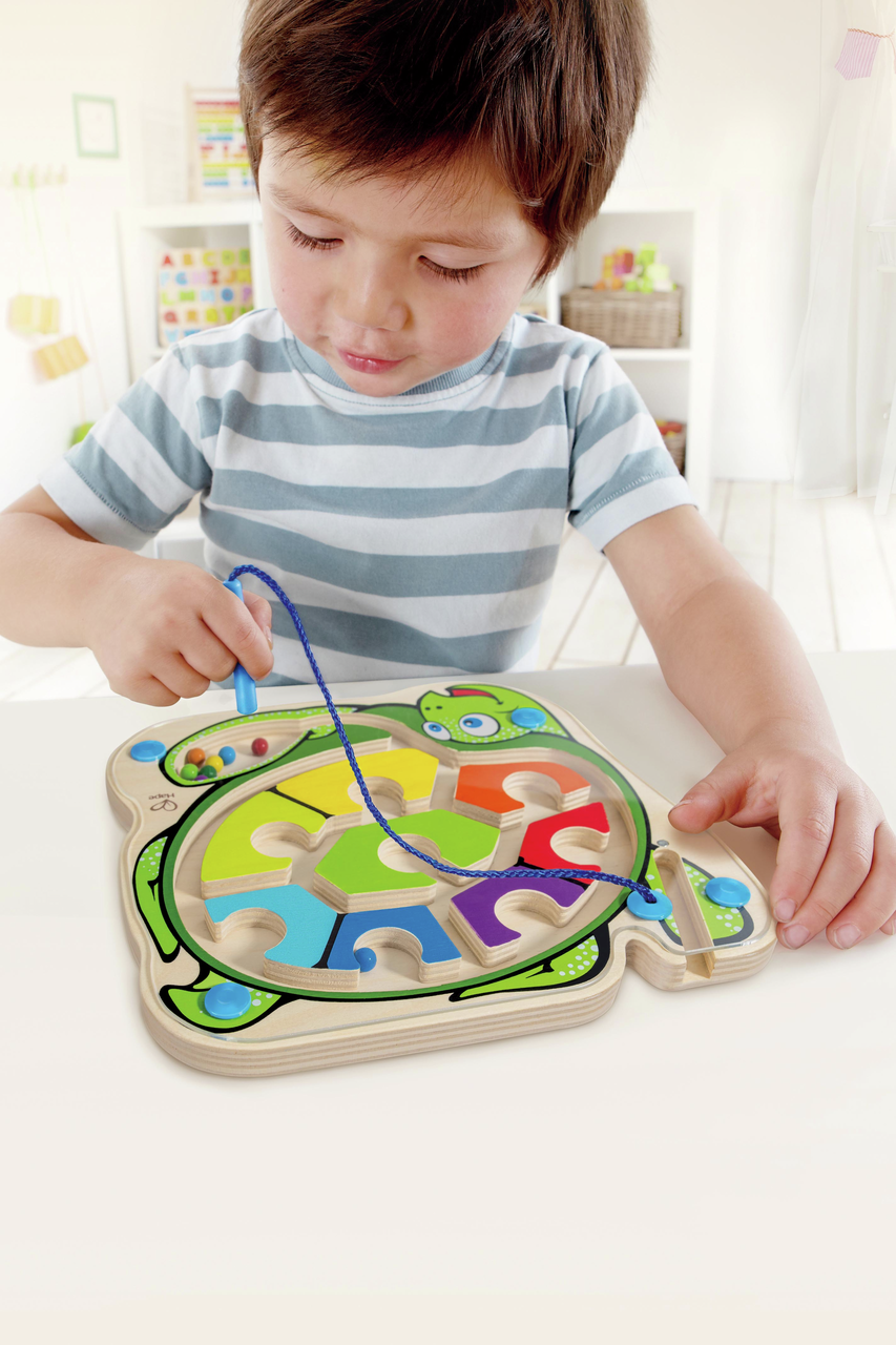 Përputhni mermeret me foletë me ngjyra. Ky labirint kompakt është i shkëlqyeshëm për udhëtime.