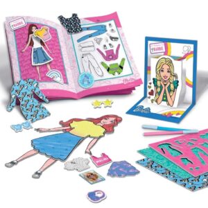 Stencile dhe modele për të krijuar veshje unike Me stencilet e përfshira, vajzat mund të vizatojnë rroba dhe aksesorë, duke ndjekur forma të paracaktuara ose duke shpikur veshje origjinale, duke zhvilluar fantazinë dhe sensin estetik.