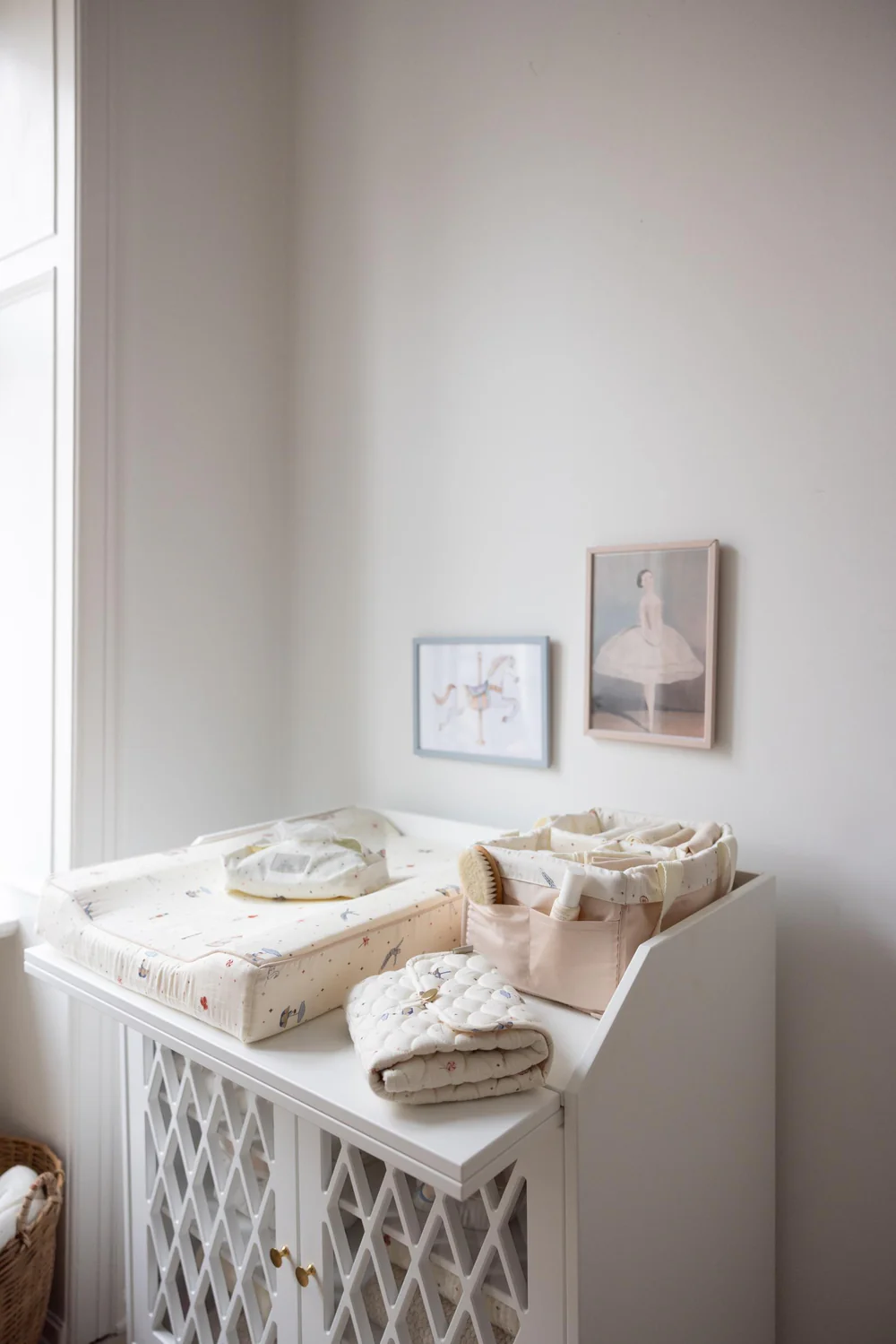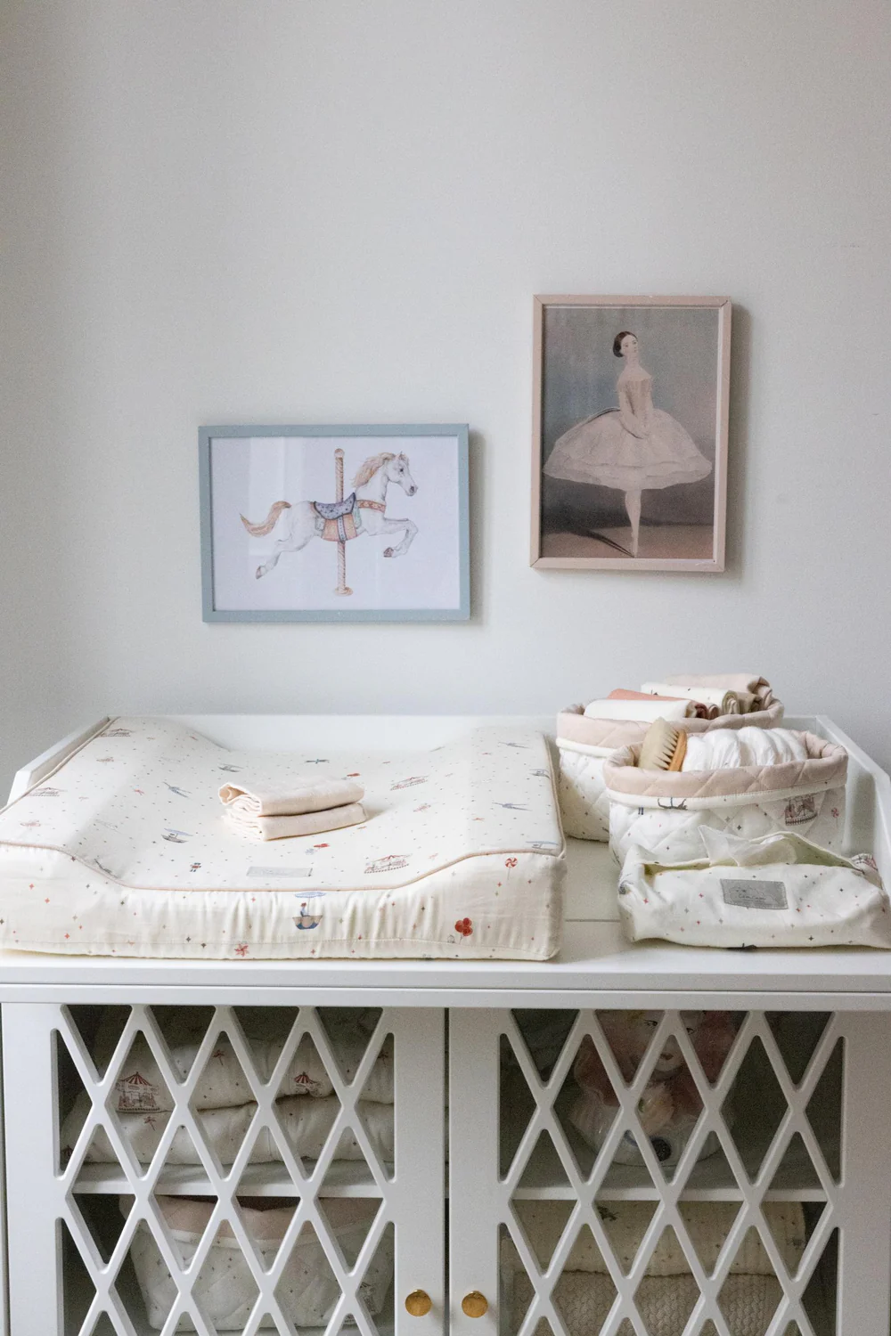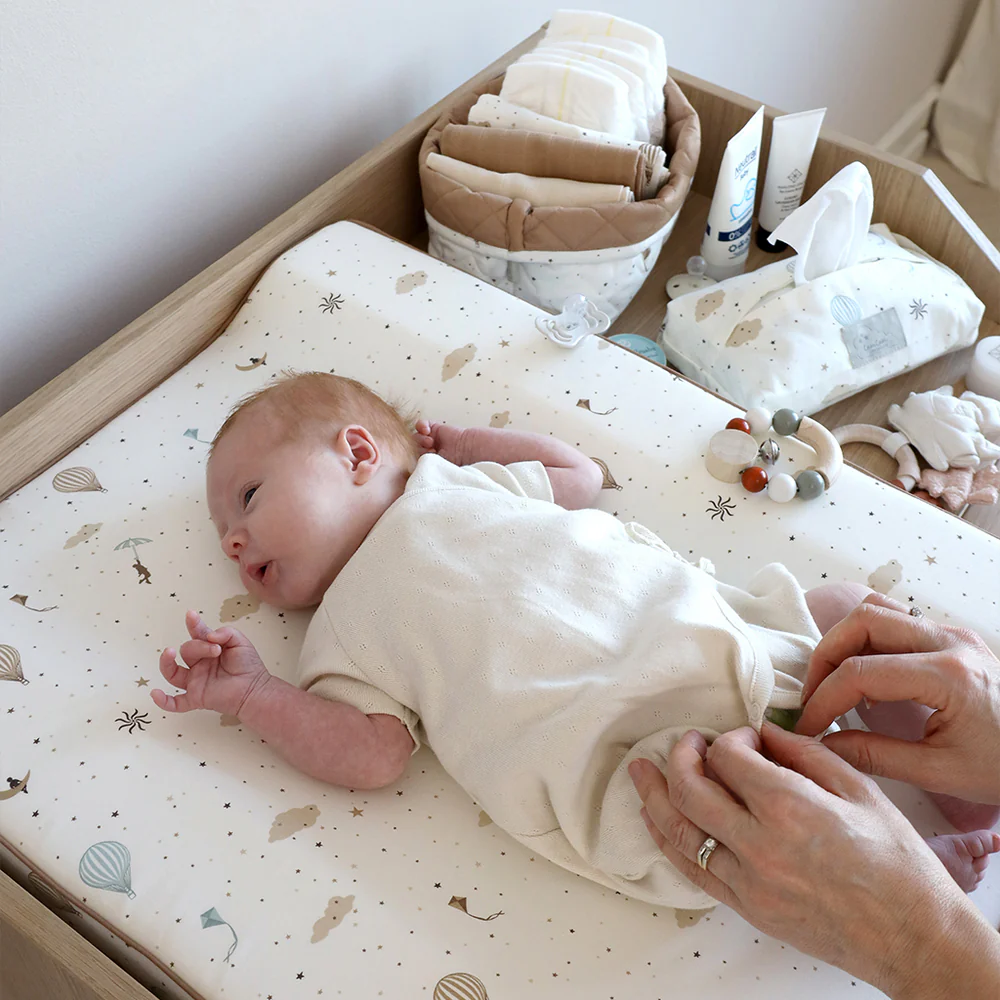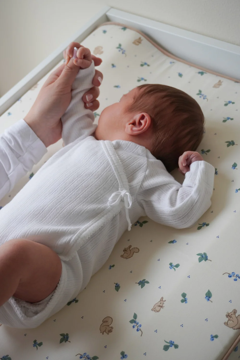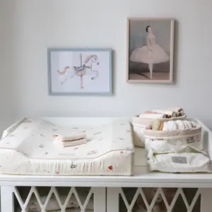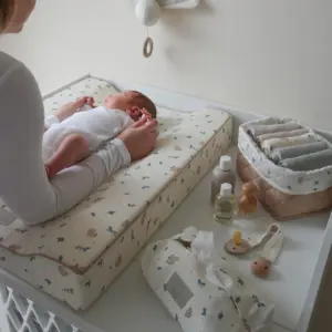 Jastëk ndërrimi me formë të rehatshme dhe skaje të larta, i cili siguron mbështetje të mirë për foshnjën.