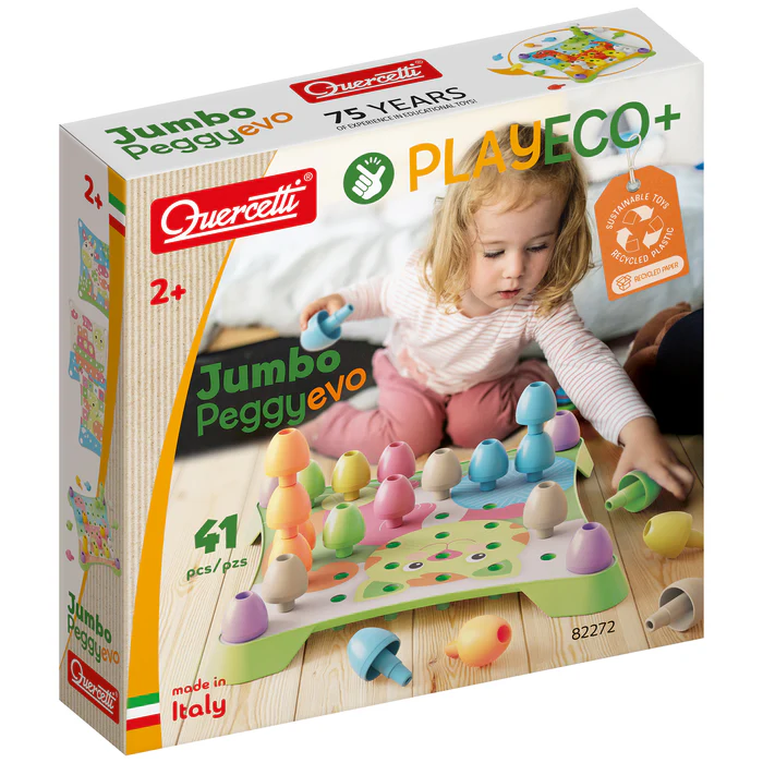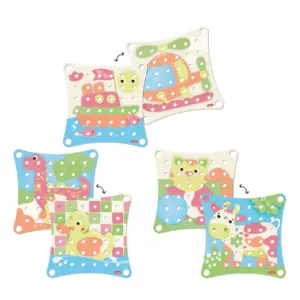 Loja e parë me kunja për fëmijët nga 2 vjeç. Pjesët e shumta janë shumëngjyrëshe, të mëdha dhe të grumbullueshme për të bërë mozaikë shumëngjyrësh ose për të ndërtuar kulla të larta. Një lojë e mrekullueshme që stimulon kreativitetin dhe aftësitë manuale.