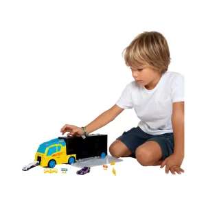 Set i Plotë dhe Gati për Përdorim Seti përfshin një kamion bisarca, 2 makina Hot Wheels dhe sinjale rrugore. Doreza praktike e bën të lehtë marrjen me vete, duke garantuar orë lojërash kreative dhe interaktive për të gjithë vogëlushët e dashur për makina.