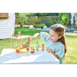• SHUMË AKSESORË: Seti përfshin një dyqan lëngjesh, motoçikletë me energji diellore, bar, gota, enë lëngjesh, kashtë, shtrydhëse, shkallë, copa frutash (luleshtrydhe, arra kokosi, ananas), mjete kopshtarie (lopatë, kanaçe ujitjeje, rake), figurinë dhe më shumë.