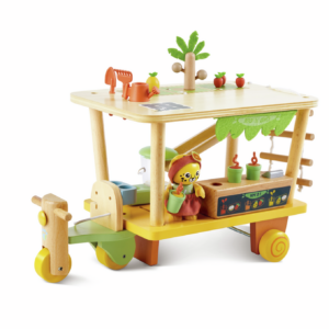 • Përfshin shumë aksesorë argëtues për lojën me role, duke përfshirë një motoçikletë me energji diellore dhe stendë frutash