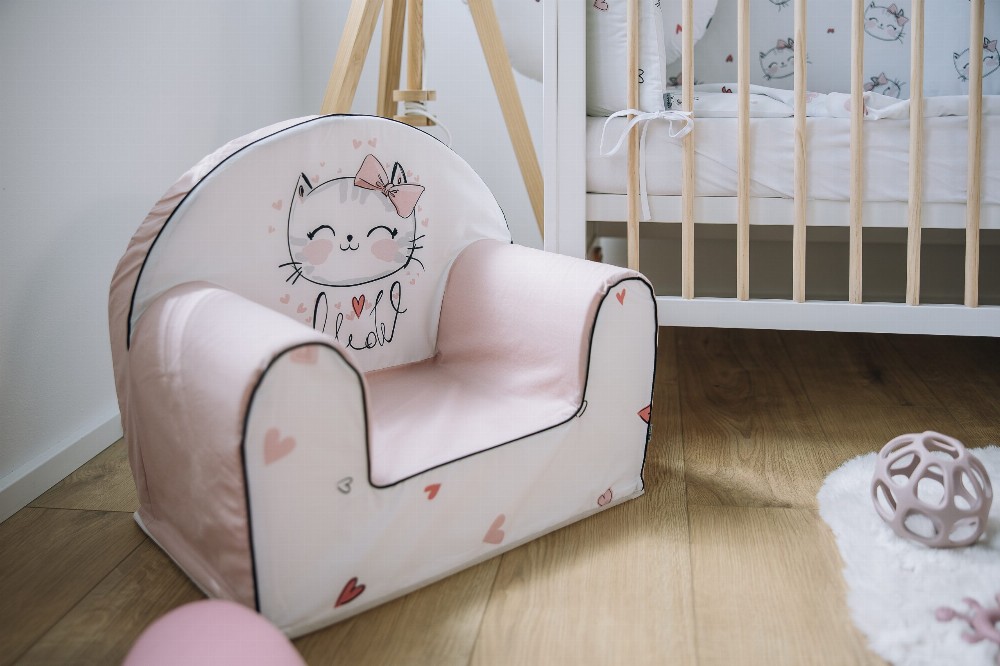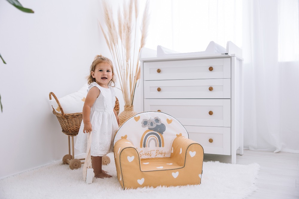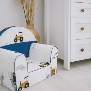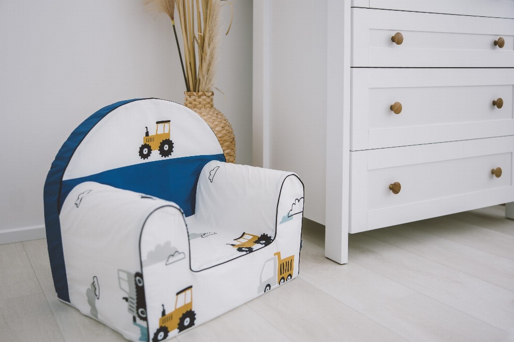 Një kolltuk me cilësi të lartë dhe i rehatshëm në një sërë dizajnesh është menduar për t’u përdorur në një kënd fëmijësh gjatë shikimit të filmave vizatimorë ose leximit.