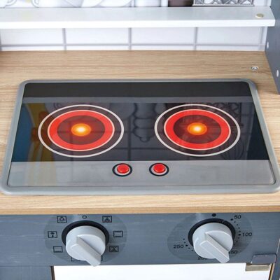 Përmban dy unaza sobë të ndriçuara me efekte realiste zanore gatimi me pulla furre që bëjnë një tingull argëtues klikimi kur kthehen dhe një lavaman me rubinet që ka një dorezë lëvizëse.