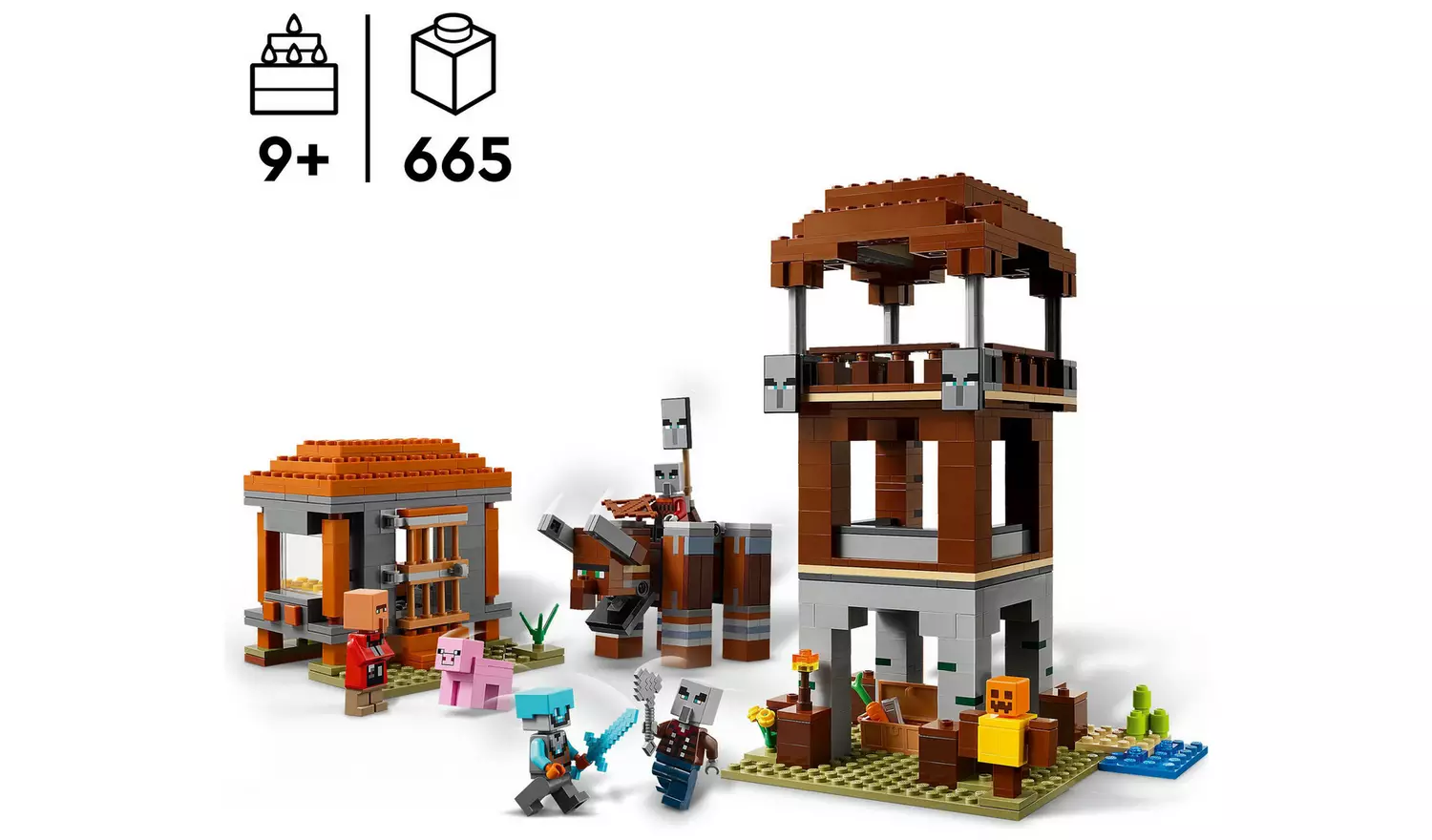 Beteja e fshatit LEGO Minecraft – Lodra e ndërtimit Pillager Outpost dhe Ravager për djem dhe vajza 9+ vjeç është e mbushur me veprime praktike për adhuruesit e lojërave dhe lodrave interaktive.