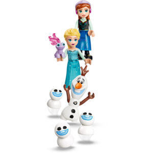 Luaj me 7 figura LEGO Ç Disney Frozen: Elsa, Anna, Olaf, Bruni dhe 3 Snowgies, plus një lodër kështjelle me 2 nivele me dhomën e fronit, ballkon, 2 shtretër dhe një kuzhinë.