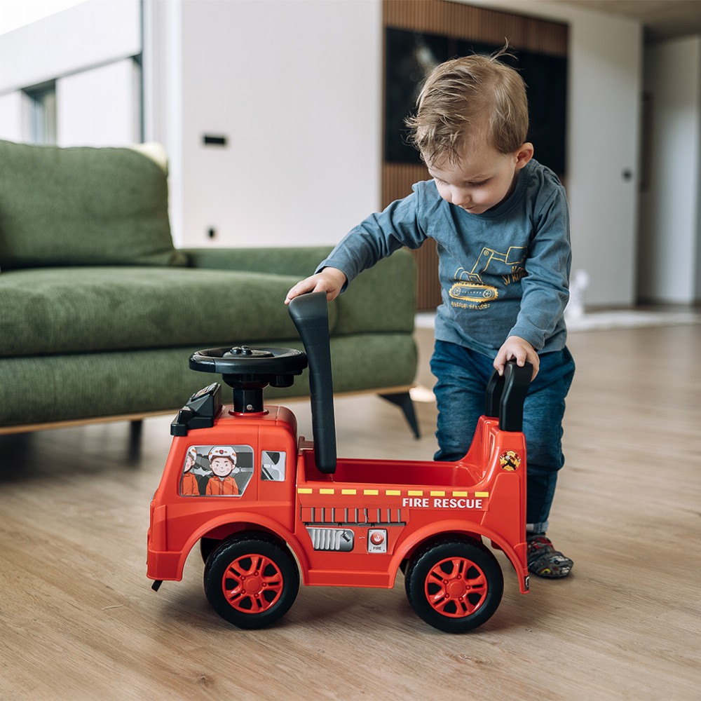 Mbështetësja e lartë ofron siguri dhe rehati shtesë, ndërsa një ndarje e fshehur nën sedilje është perfekte për thesare të vogla. Timoni përmban efekte zanore të integruara, duke e bërë çdo udhëtim edhe më argëtues dhe emocionues.
