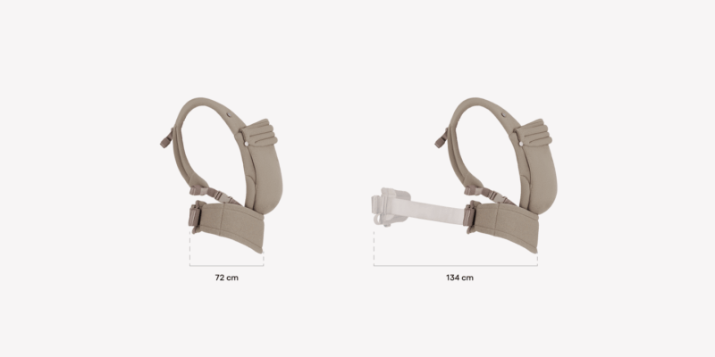 Rripat e shpatullave ngjiten në bel për foshnjat më të vogla për të shmangur presionin e shtyllës kurrizore, ose në panelin kryesor për foshnjat më të mëdha, duke siguruar mbështetje të sigurt dhe ergonomike.