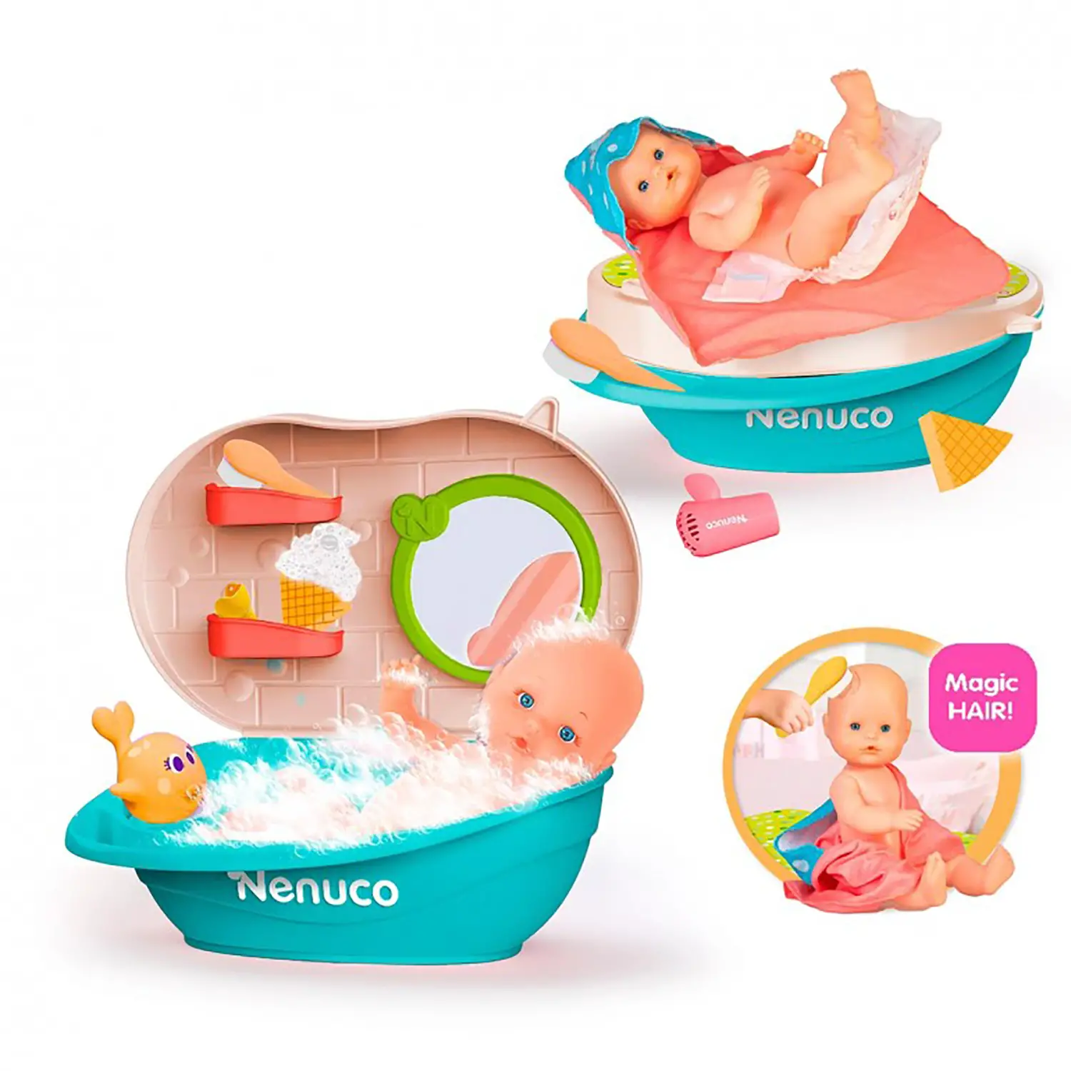 Vaska e Banjes 2 në 1: Vaska e banjës e Nenuco krijon shkumë të vërtetë dhe shndërrohet në një tavolinë për të ndryshuar pelena.
