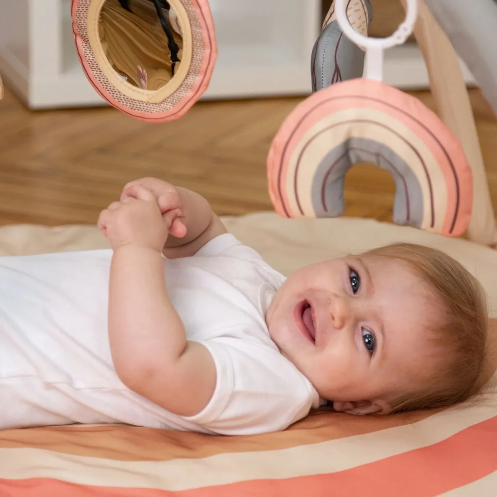 ELEGANT dhe AMÜSANT – dysheku ynë i lojës për fëmijë me hark lojërash në një dizajn elegant unisex boho ylber, do të argëtojë fëmijën tuaj dhe do të dekorojë brendësinë tuaj me dizajnin e tij modern në të njëjtën kohë.