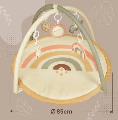 Me një diametër prej 85 cm, batanija e lojës së foshnjave me hark lojërash ofron shumë hapësirë për “kohë barku” të sigurt dhe të përkëdhelur dhe për zvarritje dhe lojë të butë.