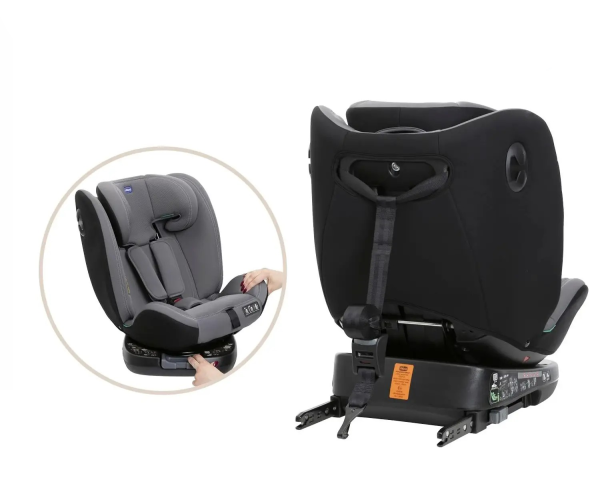 Sistemi rrotullues e bën të lehtë kalimin midis pozicionimit nga mbrapa dhe përpara dhe ju lejon të poziciononi lehtësisht fëmijën tuaj kur sedilja është instaluar prapa.