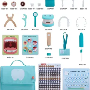 Fëmijët mund të marrin pjesë në lojën imagjinative si dentist, duke përdorur mjete si pasqyra dentare, shiringa, filli dentar dhe mjetet e nxjerrjes për të simuluar procedurat. Plus, kartat edukative mësojnë teknikat e duhura të larjes dhe diskutojnë ndikimin e dietës në shëndetin e dhëmbëve, duke e bërë rëndësinë e higjienës dentare argëtuese dhe interaktive.