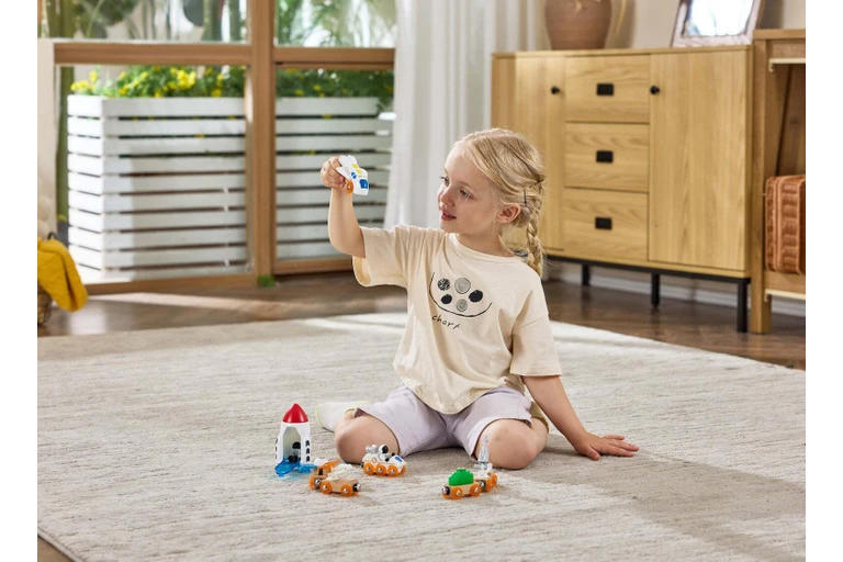 Eksploroni hapësirën me astronautë, automjete dhe një anije kozmike të palosshme në një botë interaktive që shkëlqen në errësirë.