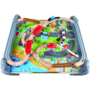 Seti i tavolinës Hape Train është një mobilje prej druri me një ndarje që mban 70 copë.