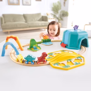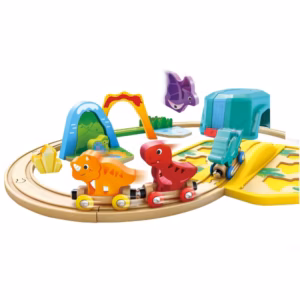 Krijo linjën tënde hekurudhore ashtu si të pëlqen, dhe pastaj dërgo miqtë e vegjël dinosaure në udhëtim. Në fletën e lojës mund të vendosësh blloqet përkatëse në formë dinosaurësh ose t’i renditur ato mbi Ujëvarë, Vullkan dhe Ura e Qiellit falë ndërtimit të tyre të qëndrueshëm.