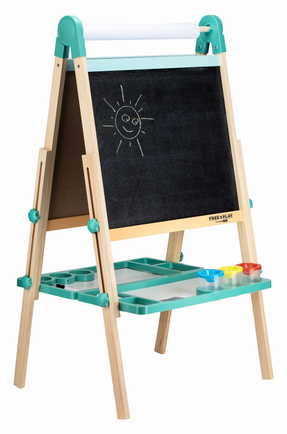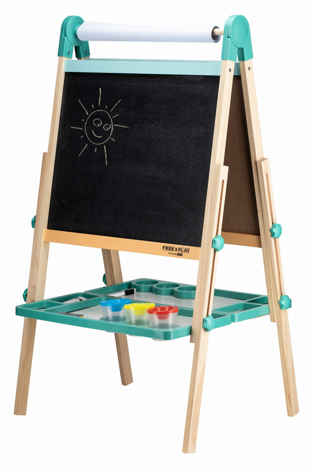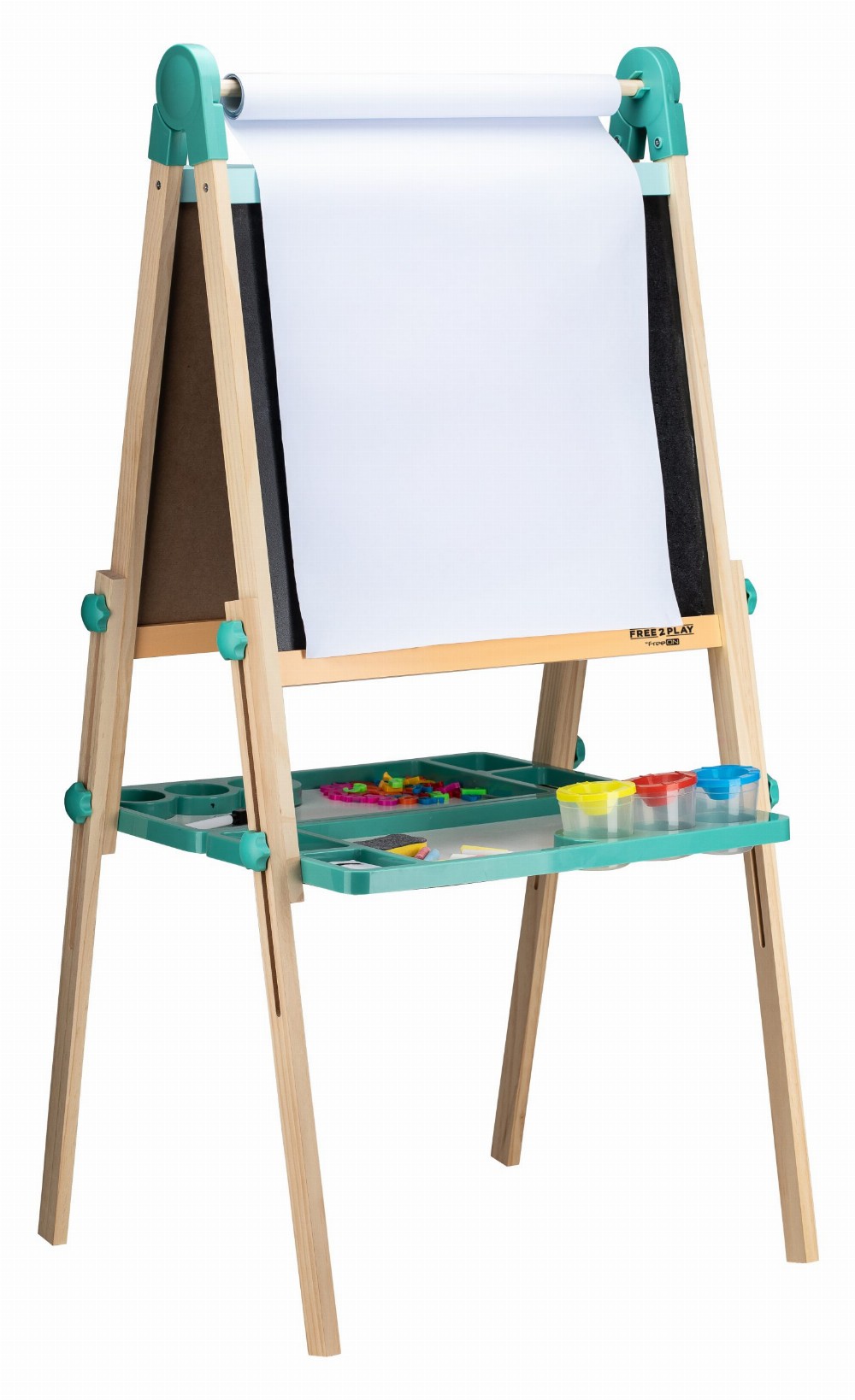 Free2Play Duo Play Tabela prej druri e dyanshme me aksesorë është një mjet krijues i gjithanshëm që inkurajon lojën, mësimin dhe imagjinatën.