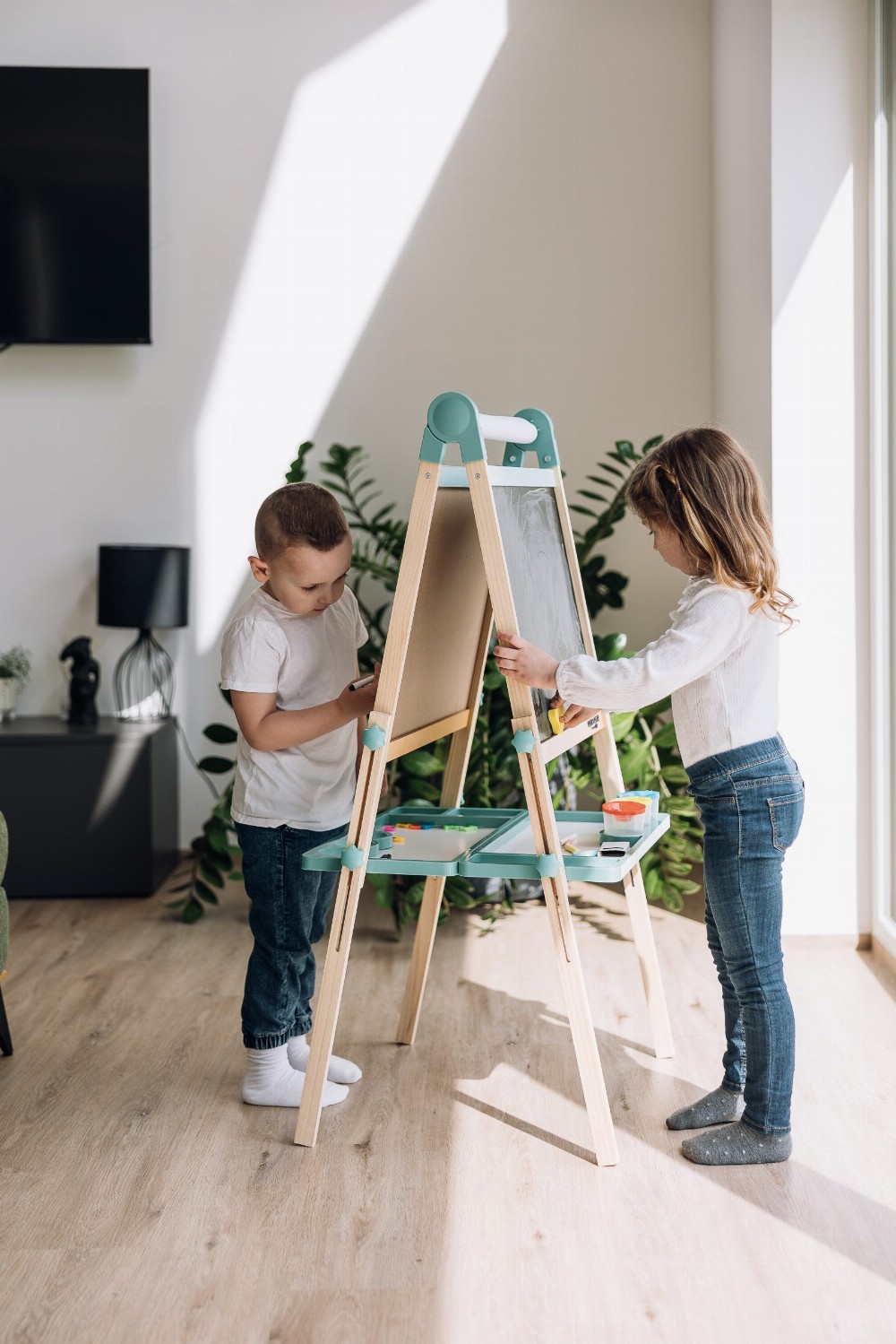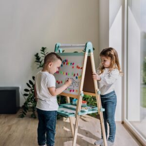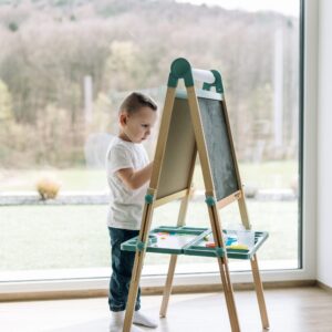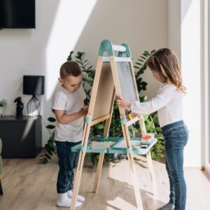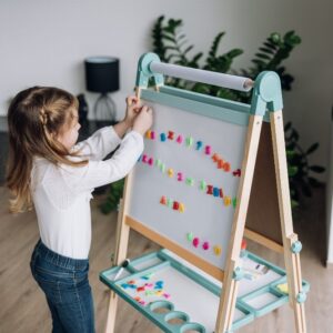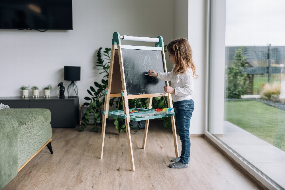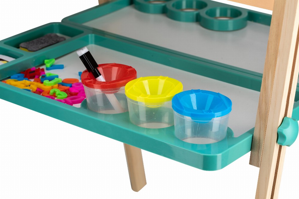 Free2Play Duo Play Tabela prej druri e dyanshme me aksesorë është një mjet krijues i gjithanshëm që inkurajon lojën, mësimin dhe imagjinatën.