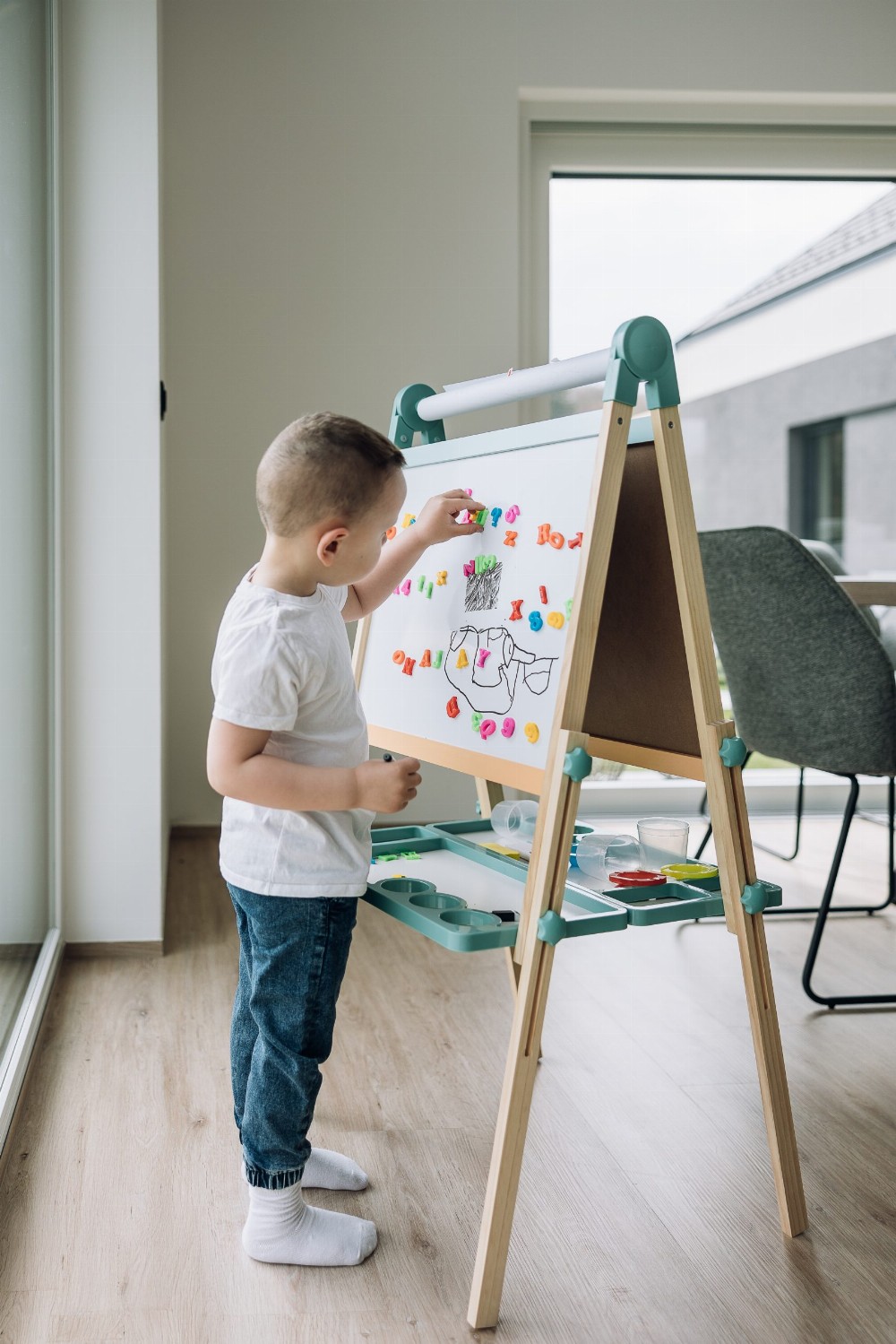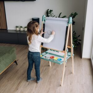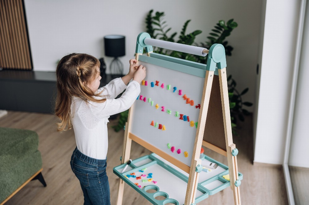 Përmes lojës në tabelë, fëmijët mund të mësojnë shkronjat dhe numrat e tyre të parë në një mënyrë argëtuese, të praktikojnë shkrimin dhe vizatimin dhe të zhvillojnë aftësi motorike të imta, koordinimin sy-dorë dhe aftësitë grafomotorike.