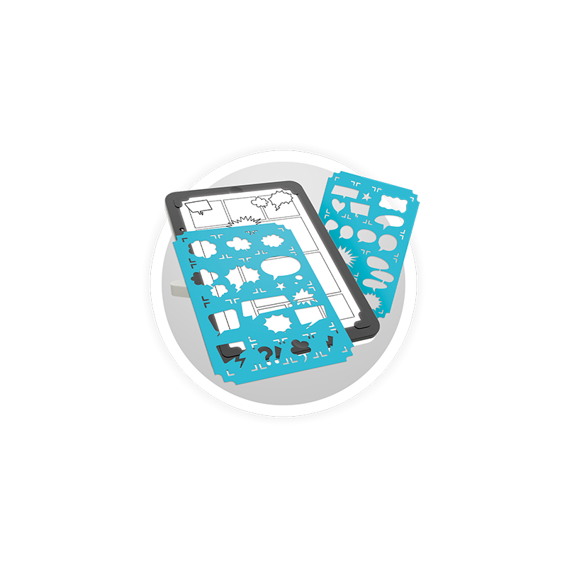 Veçoria komike/manga: Merrni një fletë, përdorni shabllonet për të krijuar faqe bosh të librave komikë, pastaj vizatoni, shtoni ngjitëse dhe shkruani historitë tuaja.