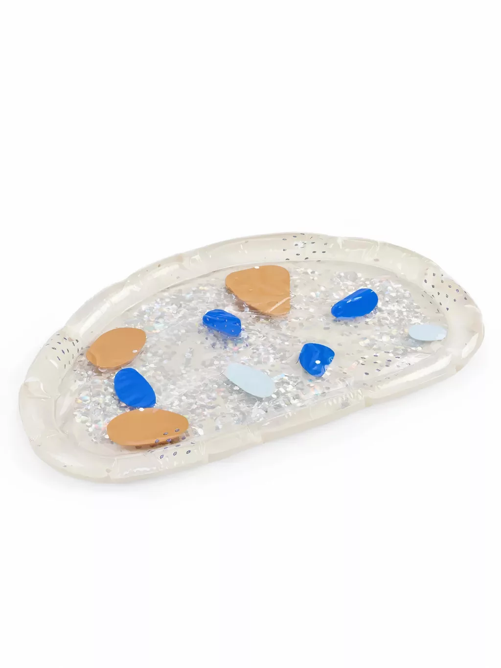 Hakuna Matte ndryshon këtë sfidë: sipërfaqja lëvizëse e butë e mbushur me ujë dhe format vezulluese që notojnë brenda saj mbajnë vëmendjen e foshnjës aq shumë sa ata as nuk e vënë re përpjekjen.
