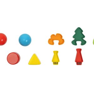 11 copë të përfshira: 2 topa, 3 forma dhe 6 copë për të kompozuar pyllin